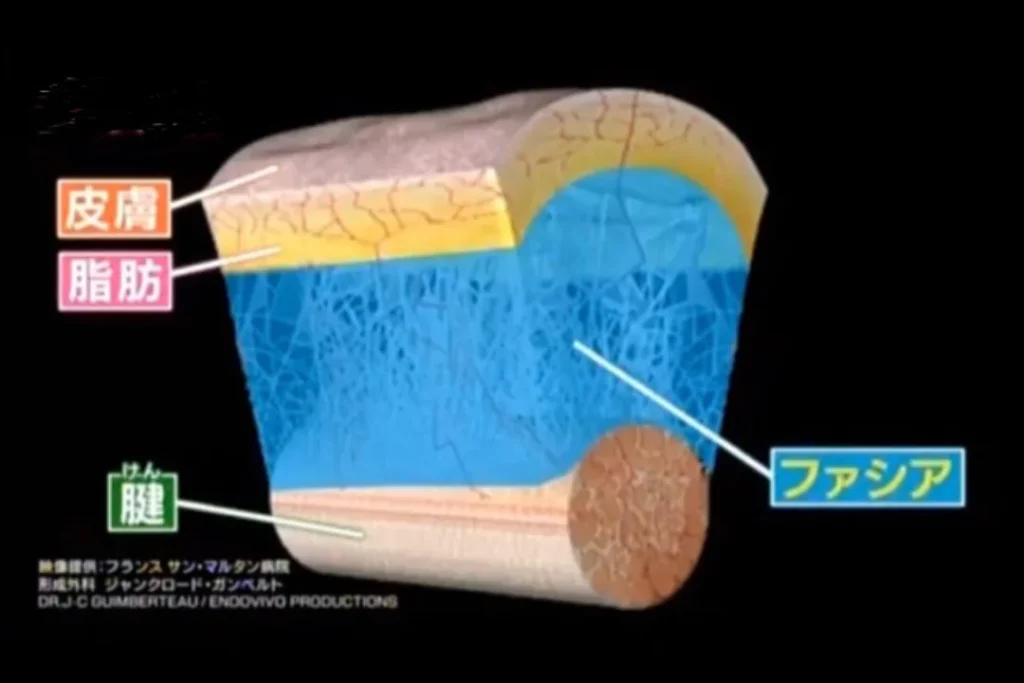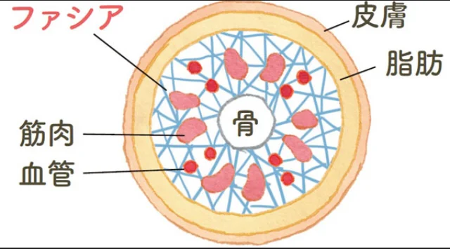 *ファシア=脈管・神経・内臓・脳・筋・骨をそれぞれ包み込み、全身に隈なく張り巡らされ全身を連結する、主にコラーゲンとエラスチンで構成される結合組織(別記ご参照ください)