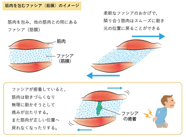 *ファシアが硬くなれば神経・血管が圧迫され、周辺組織や筋肉も硬くなり、関節にも歪みが生じる