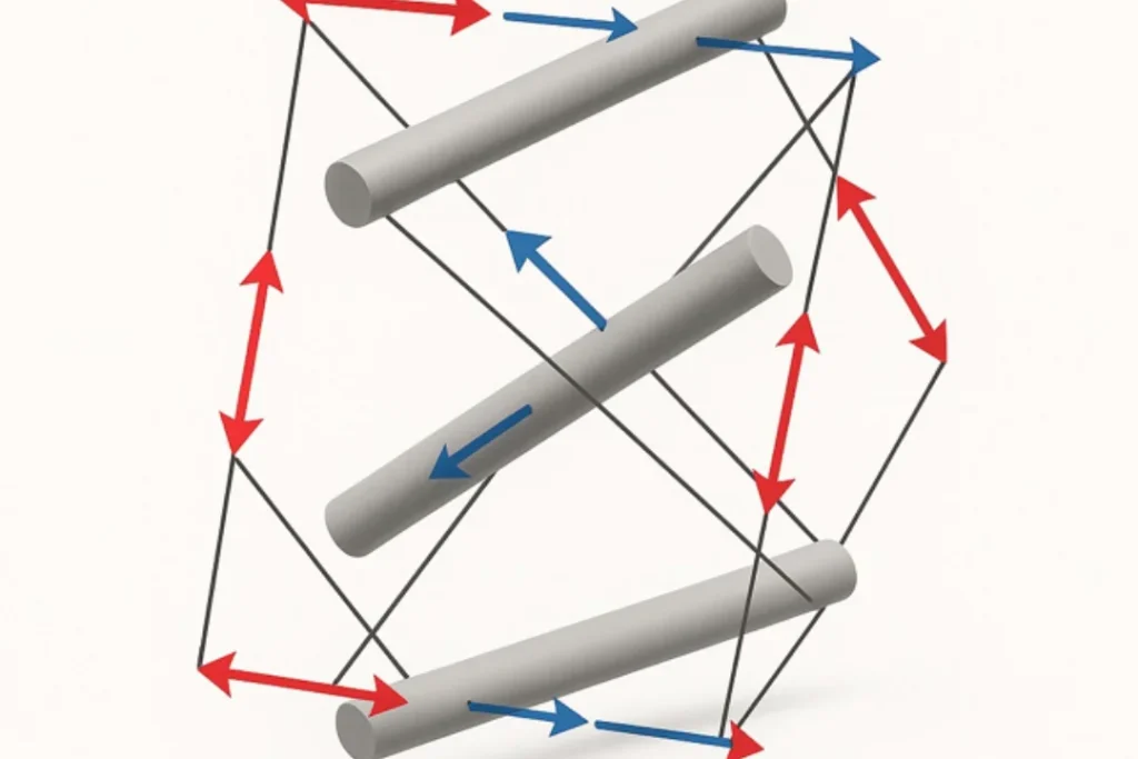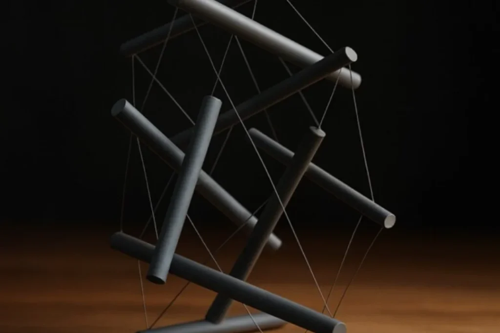 ネジや釘などのいっさいの固定器具を使わずに、使用する物質の張力バランスのみで維持する構造物のことです。